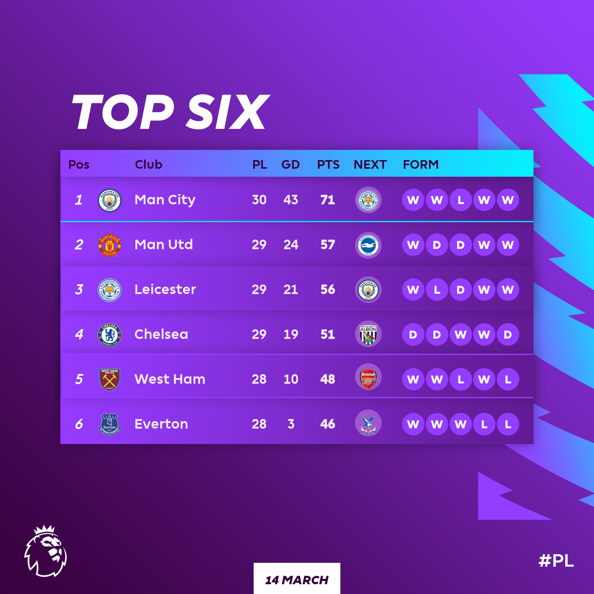 Premier League On Twitter How The Six Looks After Another Pl Weekend Https T Co Xcb6h9e57s Twitter